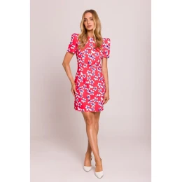 95 % polyester 5 % elastan INFORMACE O PRODUKTU: tkaná látka mini trapézové šaty krátké obláčkové rukávy ozdobné klopy vpředu s knoflíky ve tvaru srdce skrytý zadní zip bez podšívky naše modelka je vysoká 171 cm a nosí velikost S navrženo a vyrobeno v Polsku
