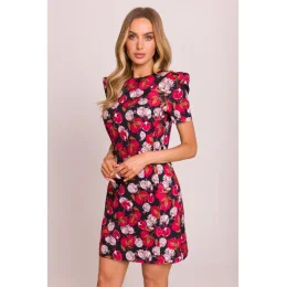 95 % polyester 5 % elastan INFORMACE O PRODUKTU: tkaná látka mini trapézové šaty krátké obláčkové rukávy ozdobné klopy vpředu s knoflíky ve tvaru srdce skrytý zadní zip bez podšívky naše modelka je vysoká 171 cm a nosí velikost S navrženo a vyrobeno v Polsku