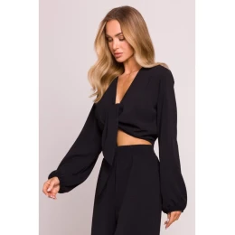 M861 Krátký top s vázáním vpředu - černý