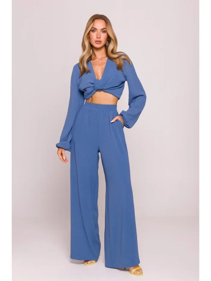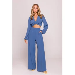 95% polyester 5% elastan MATERIÁL Materiál: lehká strukturovaná tkanina (krep), matný povrch PODROBNOSTI O PRODUKTU Pas: vysoký, elastický pás Zapínání: nazouvací (bez zipu) Kapsy: žádné Model: M862 Navrženo a vyrobeno v Polsku Modelka na fotografii měří 171 cm a má na sobě velikost S STŘIH A VÝSTŘIH Střih: volný Tvar: široké kalhoty Délka: po celé délce