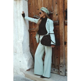 materiál: 95% polyester 5% elastan Tkanina: Hladká tkanina s matnou úpravou PODROBNOSTI O PRODUKTU Pas: Střední pas Zapínání: Knoflík vpředu a skrytý zip Kapsy: Boční kapsy Nohy: Dlouhé, široké nohavice s lisovanými záhyby Podšívka: Bez podšívky Model: M875 Navrženo a vyrobeno v Polsku Modelka na fotografii měří 171 cm a má na sobě velikost S Střih a střih Střih: Klasický střih se širokou siluetou Tvar: Přiléhavý v pase a na bocích, volný od stehen dolů Délka: Po zem