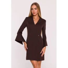 M876 Šaty s širokými manžetami - hnědé