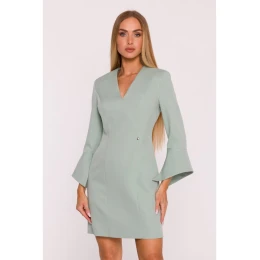 95% polyester 5% elastan MATERIÁL Tkanina: Hladká tkaná tkanina s matným povrchem PODROBNOSTI O PRODUKTU Výstřih: ve tvaru V Rukávy: délka 7/8, mírně rozšířené na manžetách Zapínání: skrytý zip na zádech Kapsy: žádné Podšívka: žádná Detaily: kovová destička s logem v pase Model: M876 Navrženo a vyrobeno v Polsku Modelka na fotografii měří 171 cm a má na sobě velikost S STYL A STŘIH Styl: rovný, mírně vypasovaný Tvar: mírně vypasovaný na ramenou, volný směrem k lemu Délka: mini