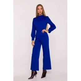 materiál: 95% polyester 5% elastan Tkanina: hladká tkanina s matným povrchem PODROBNOSTI O PRODUKTU Výstřih: stojáček s jemným řasením na ramenou Rukávy: dlouhé, zakončené širokými manžetami s rozparkem Zapínání: skrytý zip na zádech Kapsy: žádné Nohy: široké, 7/8 délka Podšívka: žádná Detaily: ozdobné knoflíky na rameni Vzor: hladký Model: M879 Navrženo a vyrobeno v Polsku Modelka na fotografii měří 171 cm a má na sobě velikost S STYL A STŘIH Styl: elegantní, ženský Tvar: mírně vypasovaný top s řasením, vypasovaný pas, široké nohavice Délka: jednodílný overal, 7/8 délka nohavic