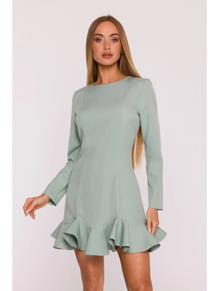 materiál: 95% polyester 5% elastan Tkanina: hladká tkanina s matným povrchem PODROBNOSTI O PRODUKTU Výstřih: klasický, kulatý Rukávy: dlouhé Zapínání: skrytý zip na zádech Kapsy: žádné Podšívka: žádná Detaily: ozdobný volánek na lemu Model: M880 Navrženo a vyrobeno v Polsku Modelka na fotografii měří 171 cm a má na sobě velikost S STYL A STŘIH Styl: mírně vypasovaný Tvar: rovný, mírně vypasovaný živůtek s tvarujícími švy, rozšířená sukně s volánkovým lemem Délka: mini