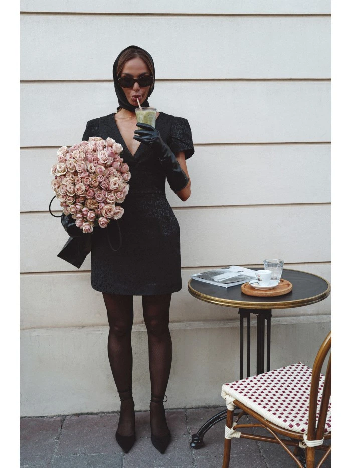 M882 Žakárové mini šaty - černé