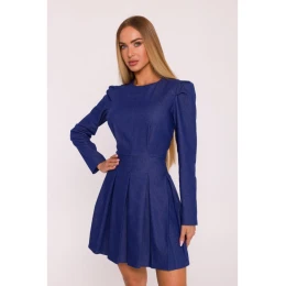 50% bavlna 47% polyester 3% elastan MATERIÁL Tkanina: látka džínového vzhledu - mírně tuhá, matná a jemně pružná. PODROBNOSTI O PRODUKTU Výstřih: kulatý, klasický Rukávy: dlouhé se záhyby na ramenou Zapínání: skrytý zip na zádech Kapsy: žádné Podšívka: žádná Model: M884 Navrženo a vyrobeno v Polsku Modelka na fotografii měří 171 cm a má na sobě velikost S STŘIH A VÝSTŘIH Střih: vypasovaný horní díl, rozšířený spodní díl se záhyby Tvar: vymezený pas, zvýrazněná ramena Délka: mini
