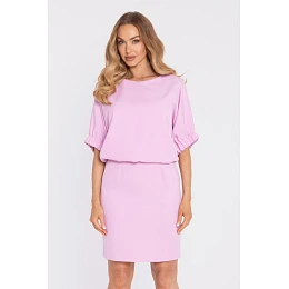 M904 Halenkové šaty s rozparkem na zádech - cukrově růžové