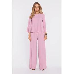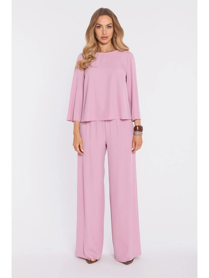 materiál: 95% polyester 5% elastan LÁTKA: hladká tkanina s jemným leskem PODROBNOSTI O VÝROBKU Pas: vysoký, elastický (nabíraný) - pohodlný a snadno padnoucí. Nohavice: extra široké, palazzo styl, plná délka. Přední díl: jemné nabírání v pase pro lichotivý střih. Kapsy: ano, boční kapsy. Zapínání: žádné - stahovací styl s elastickým pasem. Podšívka: žádná. Model: M906. Navrženo a vyrobeno v Polsku. Modelka na fotografii měří 171 cm a má na sobě velikost S. STŘIH A VÝROBEK Styl: elegantní palazzo kalhoty s vysokým pasem. Tvar: pas definuje pas, zatímco široké nohavice prodlužují a zeštíhlují siluetu. Délka: délka až k zemi.