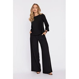 M906 Palazzo kalhoty s pružným pasem a bočními kapsami - černé