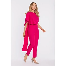 M907 Asymetrický overal s pláštěm a zvýrazněným pasem - fuchsiový