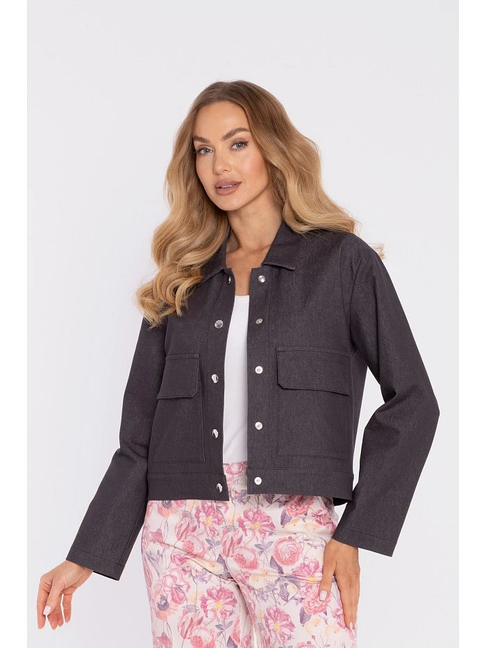M909 Zkrácená bunda na knoflíky s klopami - grafitová
