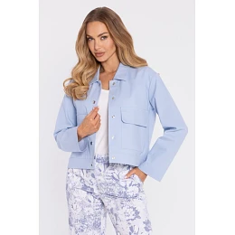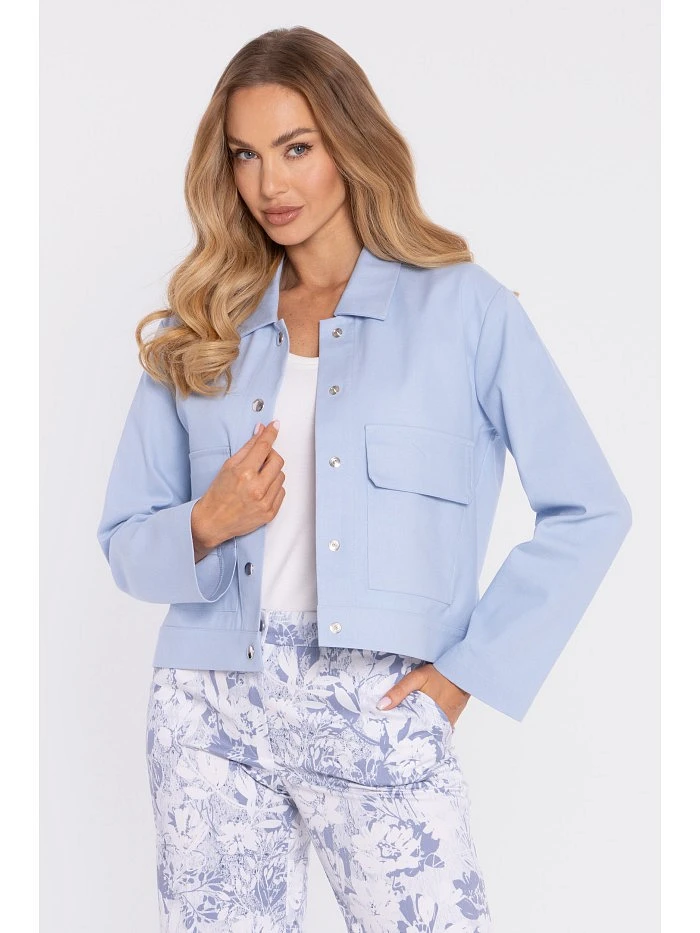 M909 Zkrácená bunda na knoflíky s klopami - světle modrá