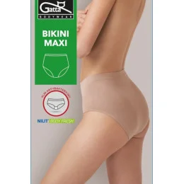 Bikiny Maxi bezešvé kalhotky s vysokým pasem. Hygienický antibakteriální klín. Díky použití polyamidové příze v kombinaci s elastanem dokonale přiléhají k tělu. Kalhotky Bikini Maxi jsou ideální volbou pro ženy, které si cení pohodlí, stylu a vysoké kvality. Tyto kalhotky jsou vyrobeny z měkké a na dotek příjemné tkaniny a poskytují dokonalý střih a pocit volnosti po celý den.