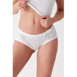 Dámské midi kalhotky. Přední díl zdobí jemné krajkové vsadky. Jednobarevné midi dno.V balení jsou nabízeny dva páry.