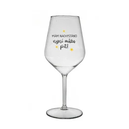 Nerozbitná čirá vinná sklenice s motivem MÁM NACHYSTÁNO, NYNÍ MŮŽU PÍT je skvělá na zahradu, pláž, výlet, piknik a parádu udělá i při kempování. Jelikož je vyrobená z kvalitního polykarbonátu je de facto nerozbitná. Je to luxusní kousek, s nímž si víno můžete vychutnat prostě kdekoliv. Mají ergonomický tvar, který příjemně padne do ruky a protože je lehká, usnadňuje to její přenášení. Je snadno skladovatelná a lehce se čistí. Díky svému designu si s ní můžete vychutnat doopravdy kdekoliv bezproblémové pití výborného vína. Materiál PP. Vyrobené s láskou v ČR