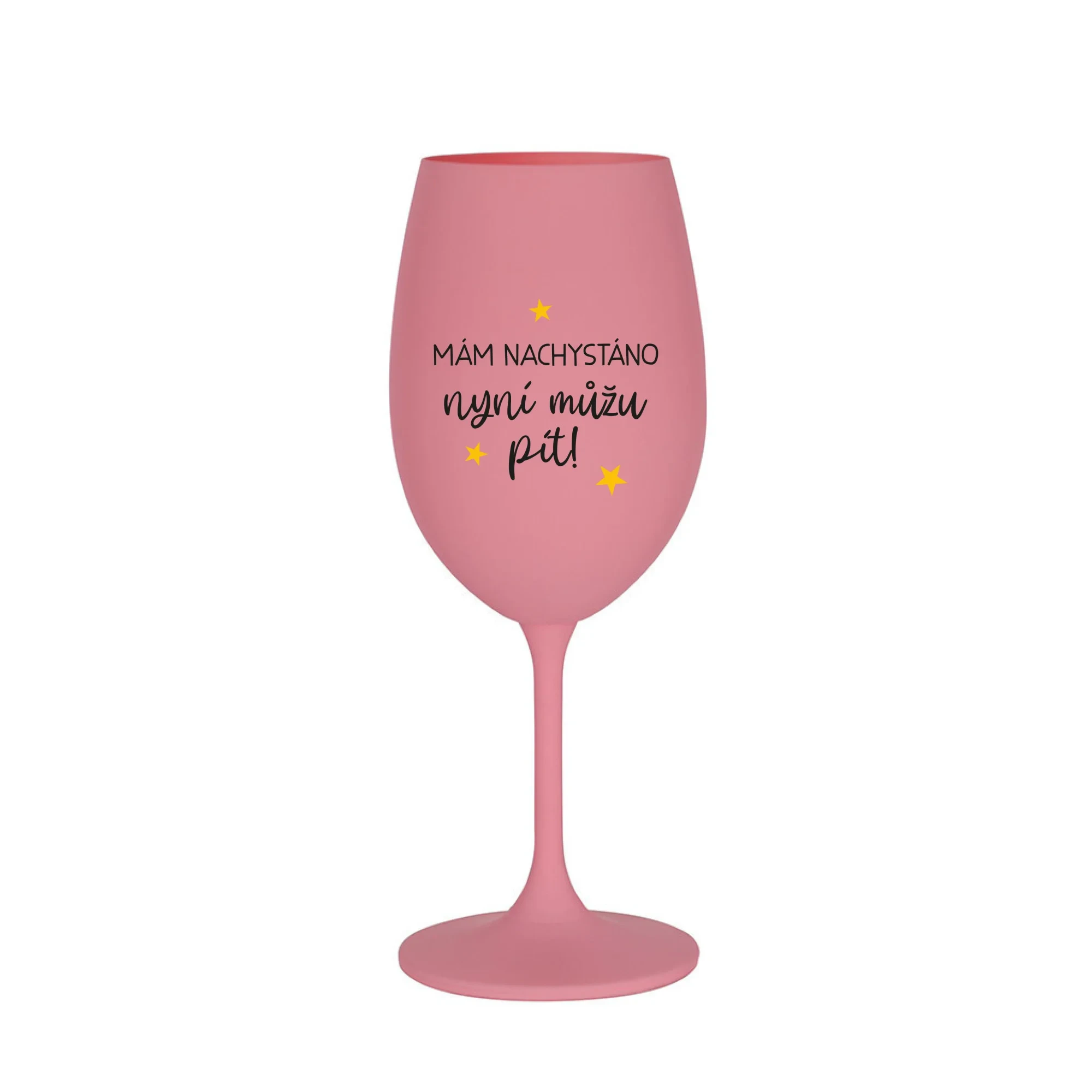 MÁM NACHYSTÁNO, NYNÍ MŮŽU PÍT - růžová sklenice na víno 350 ml