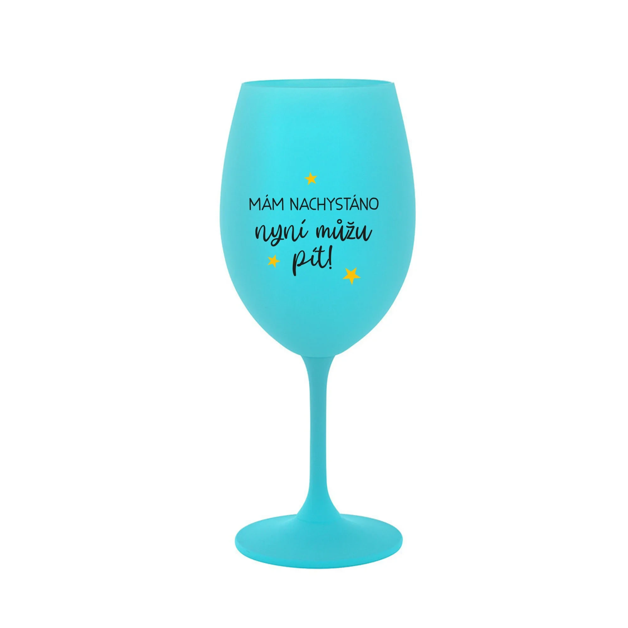 MÁM NACHYSTÁNO, NYNÍ MŮŽU PÍT - tyrkysová sklenice na víno 350 ml