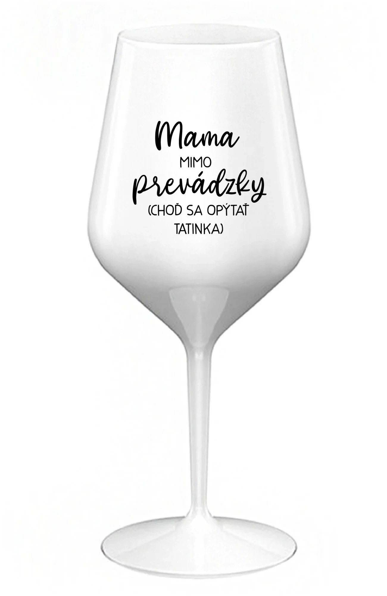 MAMA MIMO PREVÁDZKY (CHOĎ SA OPÝTAŤ TATINKA) - biely nerozbitný pohár na víno 470 ml