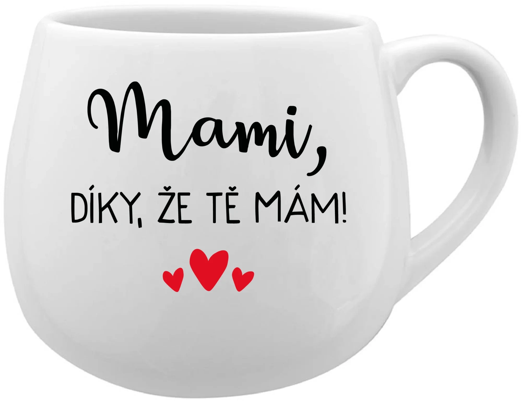 MAMI, DÍKY, ŽE TĚ MÁM! - bílý keramický hrníček 300 ml
