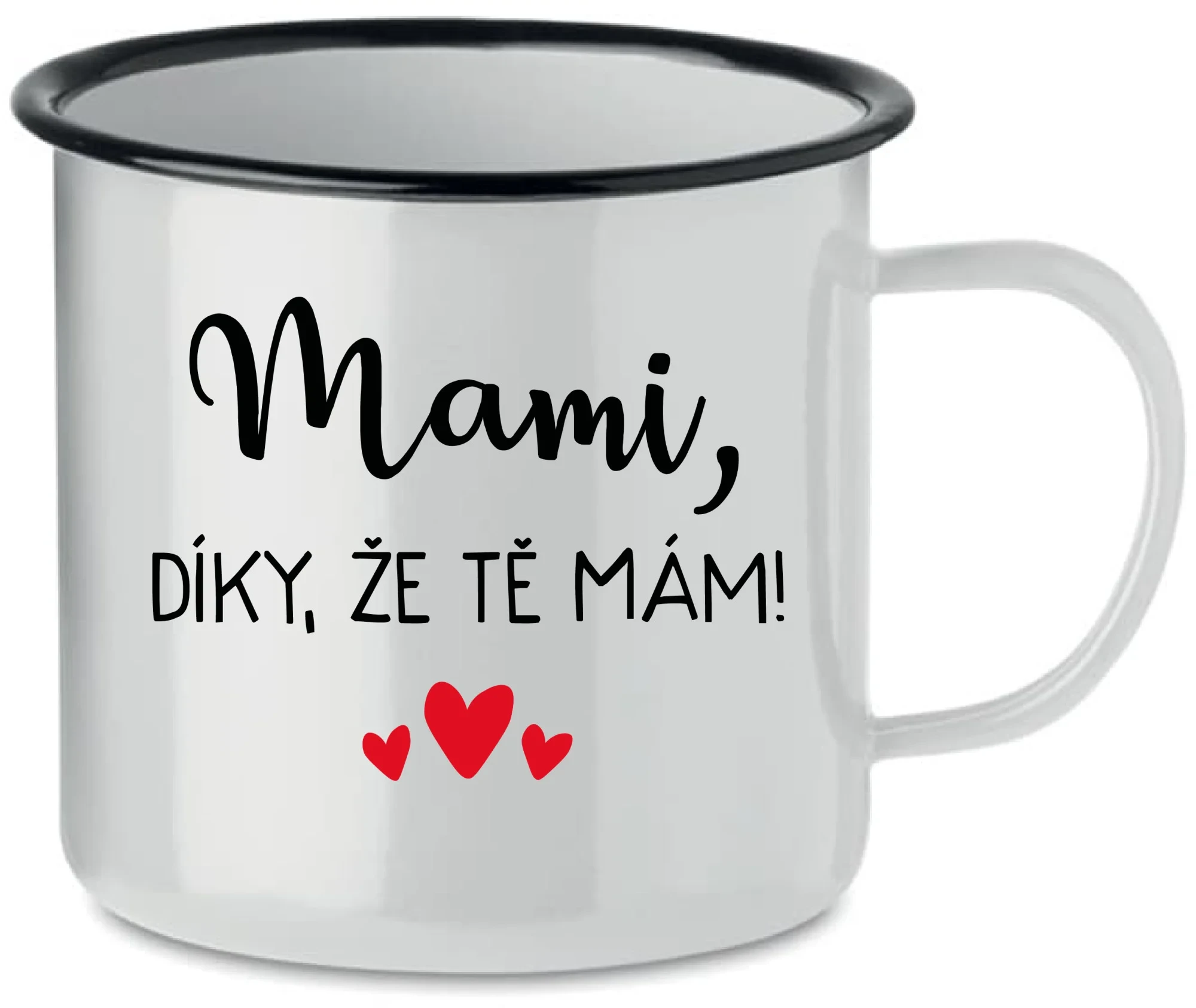 Smaltovaný Plecháček pro Chvíle Pohody - S Úsměvem a Teplem V našem rychlém světě je důležité najít si chvilku klidu a pohody. Naše nová kolekce smaltovaných plecháčků je jako stvořená právě pro tyto momenty. Každý plecháček je vyroben s láskou a pečlivostí, aby doprovázel vaše chvíle odpočinku, ať už si vychutnáváte šálek voňavé kávy, lahodného čaje nebo teplého kakaa. S objemem 350 ml jsou tyto tradiční smaltované hrnky perfektními společníky pro každý den. A co je na nich nejlepší? Každý z nich nese vtipný motiv: MAMI, DÍKY, ŽE TĚ MÁM!, který rozjasní váš den a přinese úsměv na tvář. Tyto hrnky jsou jako malé pohlazení pro duši - ideální pro chvíle, kdy jste sami sebou, nebo pro ty nezapomenutelné okamžiky strávené s vašimi nejbližšími. Zapomeňte na chvíli na všechny starosti a užijte si klidný moment s naším smaltovaným plecháčkem. Objednejte si jej nyní a připravte se na maximální požitek z každého doušku! Doporučujeme ruční mytí tohoto produktu pro zachování jeho kvality a trvanlivosti. Nedoporučujeme umisťovat do myčky na nádobí.