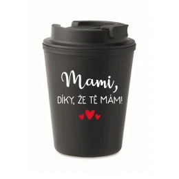 MAMI, DÍKY, ŽE TĚ MÁM! - černý termohrnek 300 ml