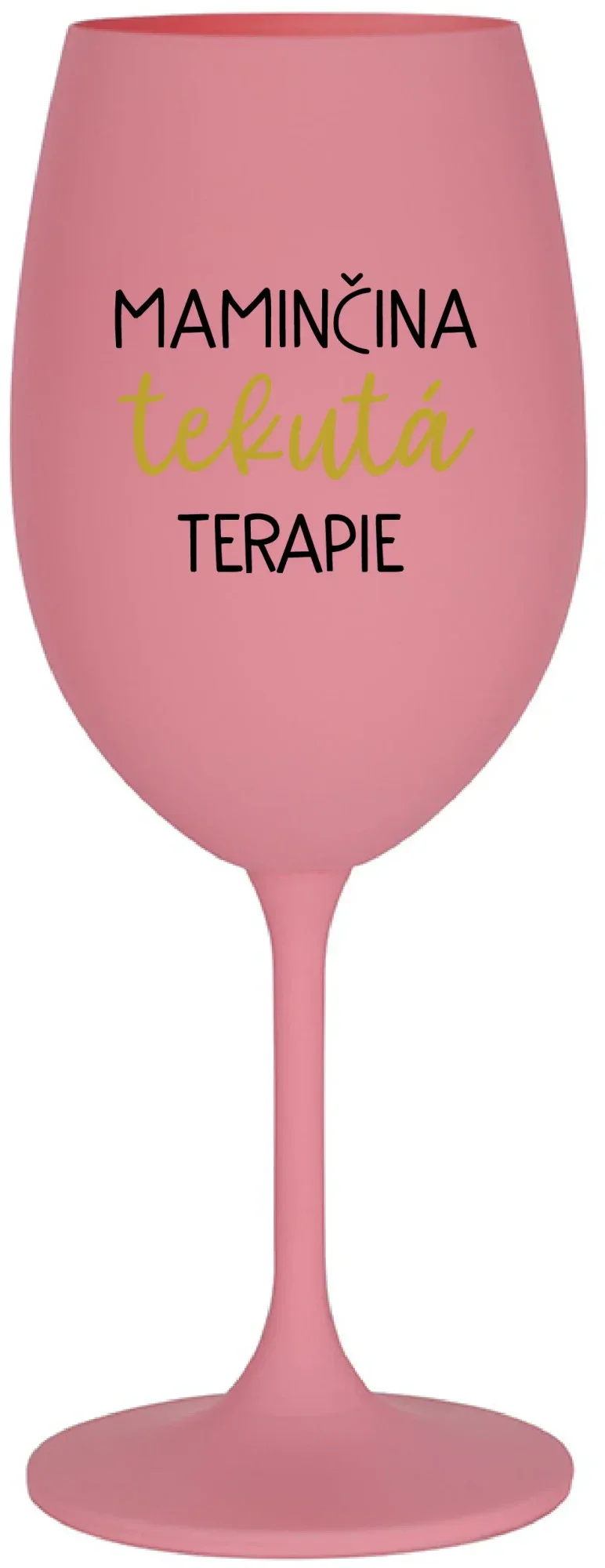 MAMINČINA TEKUTÁ TERAPIE - růžová sklenice na víno 350 ml