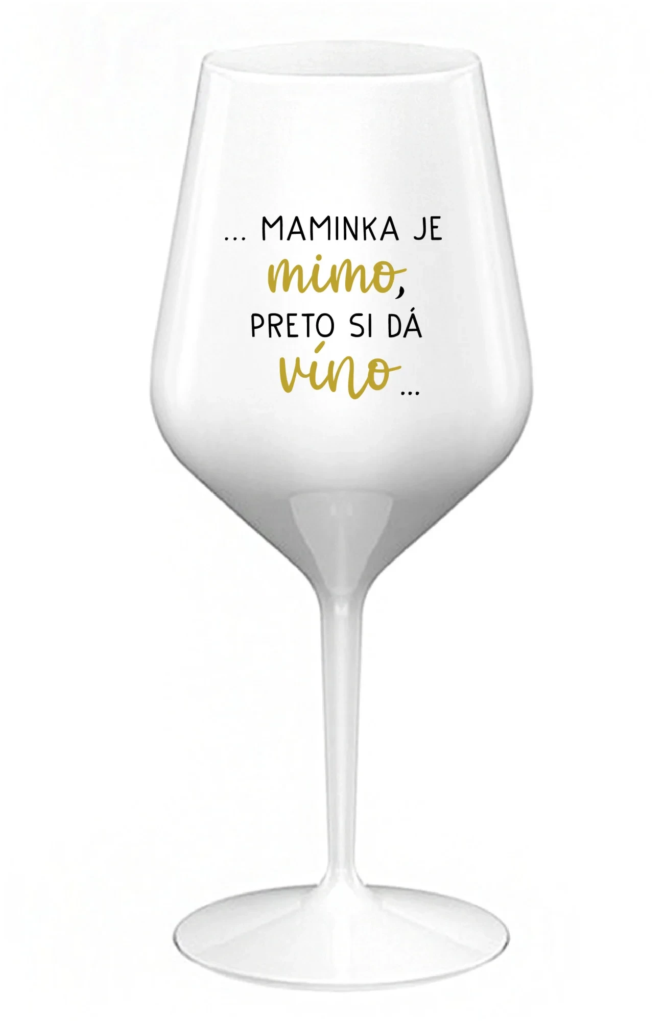 ...MAMINKA JE MIMO, PRETO SI DÁ VÍNO... - biely nerozbitný pohár na víno 470 ml