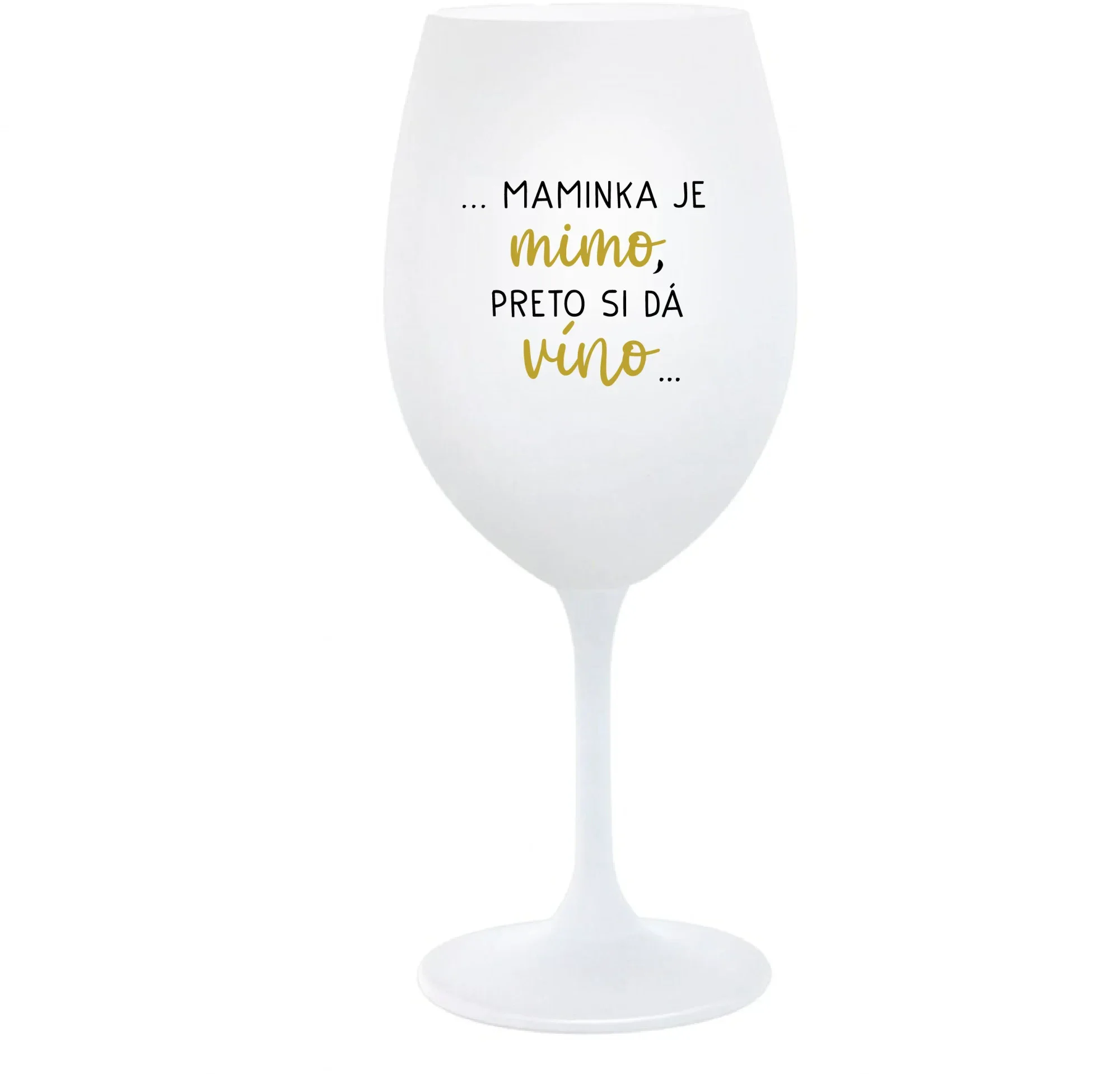 ...MAMINKA JE MIMO, PRETO SI DÁ VÍNO... - biely pohár na víno 350 ml