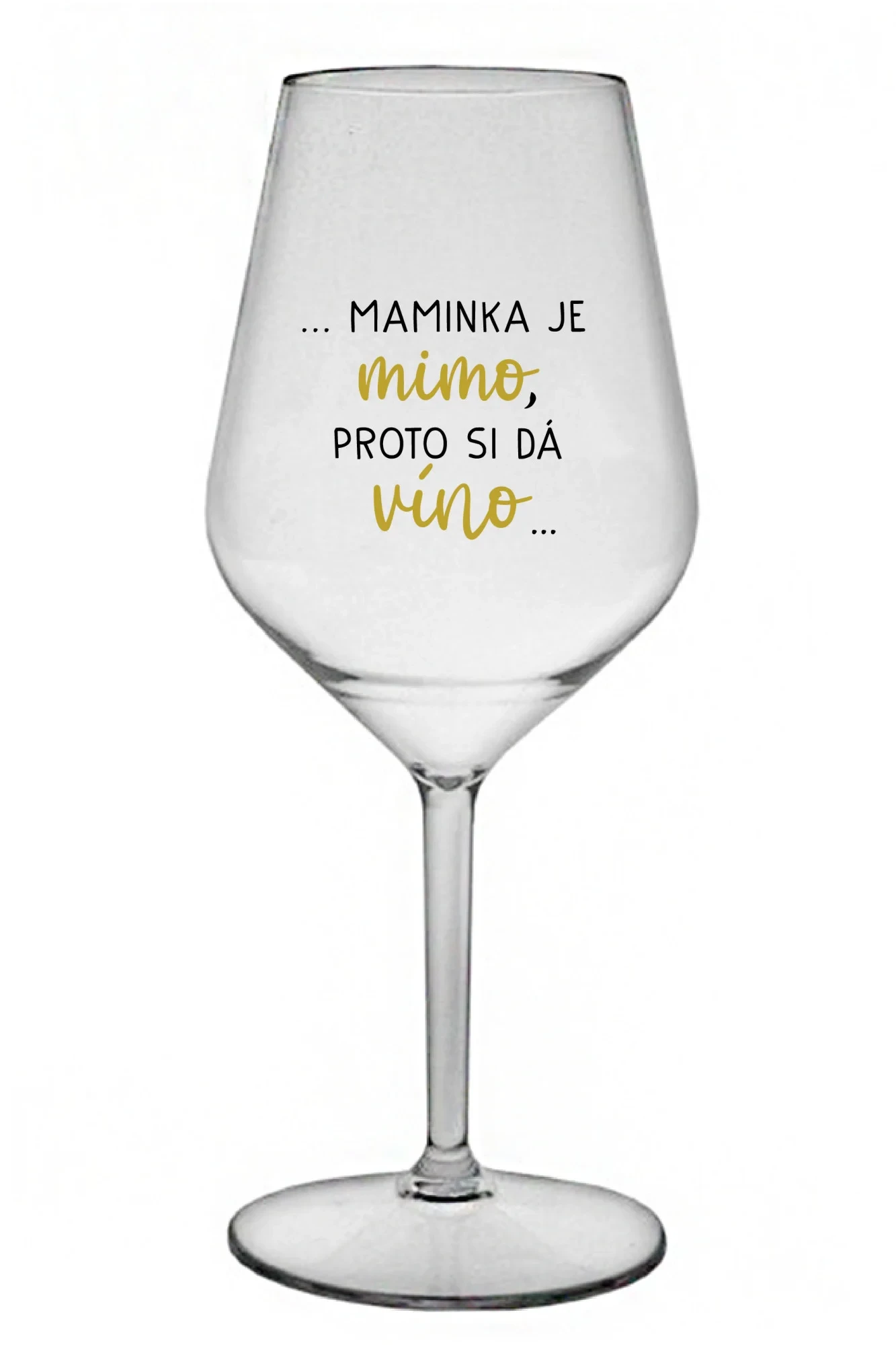 ...MAMINKA JE MIMO, PROTO SI DÁ VÍNO... - čirá nerozbitná sklenice na víno 470 ml