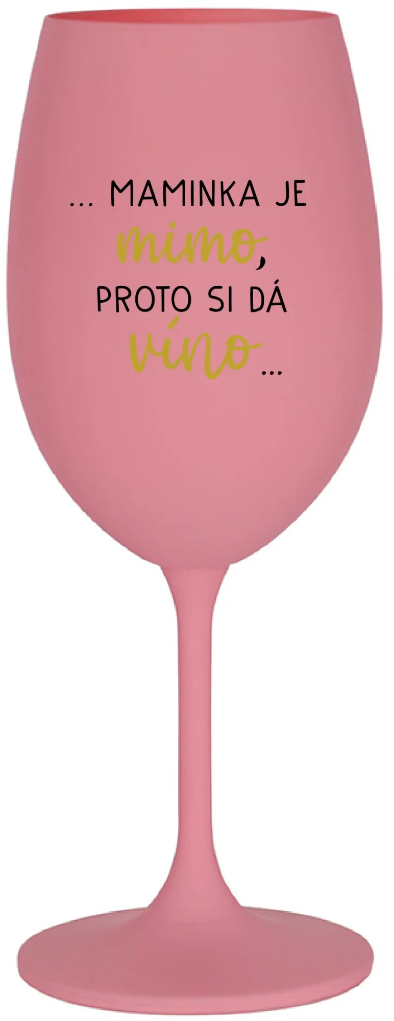 ...MAMINKA JE MIMO, PROTO SI DÁ VÍNO... - růžová sklenice na víno 350 ml