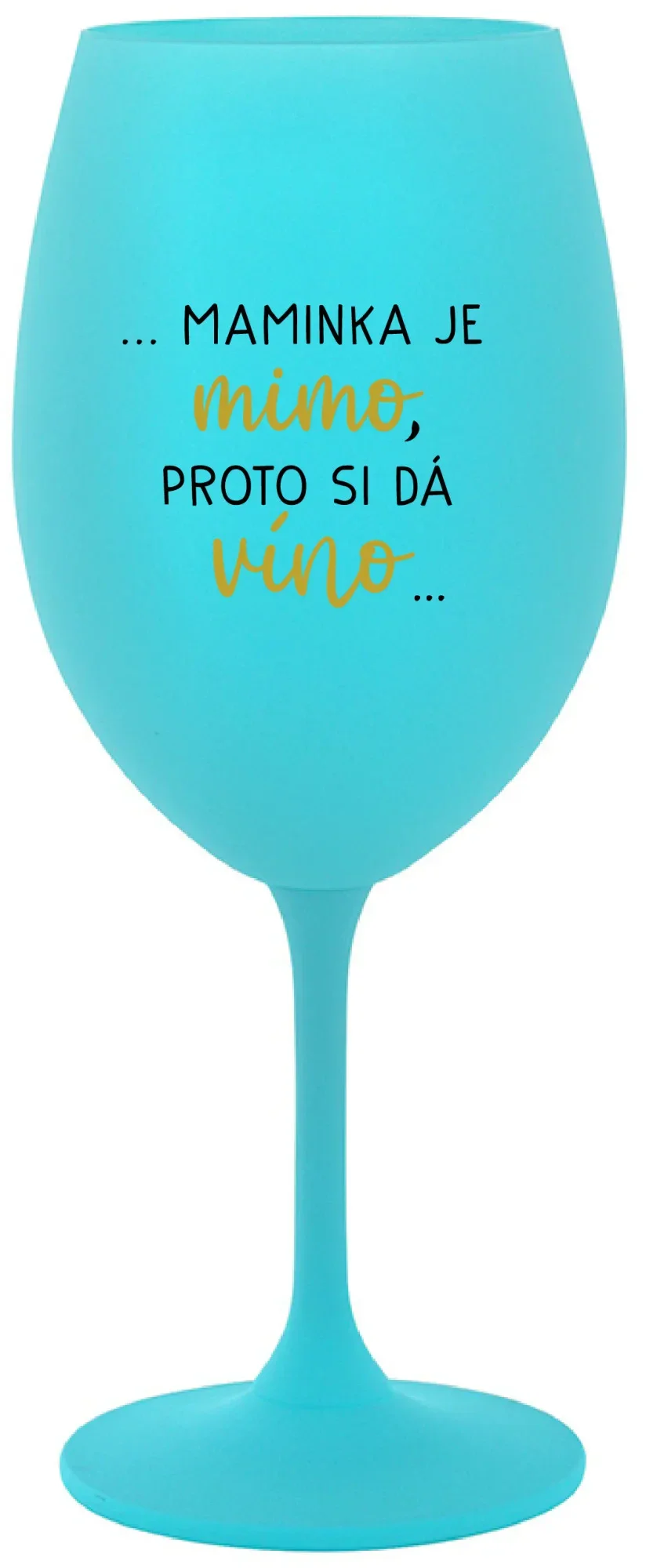 ...MAMINKA JE MIMO, PROTO SI DÁ VÍNO... - tyrkysová sklenice na víno 350 ml
