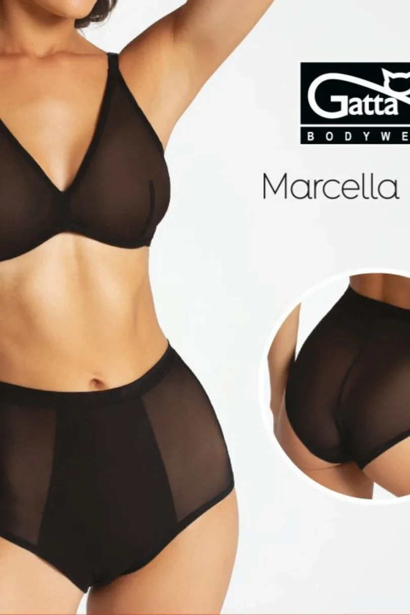 Kalhotky jsou lehce tvarující a jsou vyrobené z pružné tylové síťoviny, která dodává modelu lehkost a transparentnost. Ve přední části modelu je panel z polyamidové tkaniny, který tvaruje linii bříška a který lehce zeštíhluje pas. Kalhotky jsou olemované jednoduchou pružnou lemovkou a mají bavlněný klín.