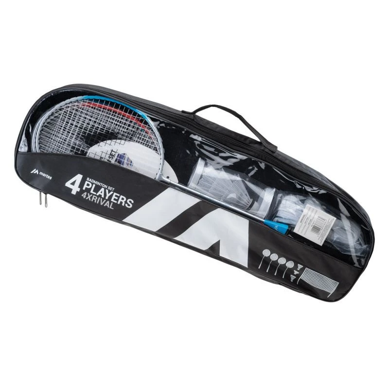 Badmintonová sada 4XRIVAL od společnosti Martes obsahuje 4 rakety, křidélka, síť a sloupky pro nastavení. Celá sada je zabalena v přenosném kufříku, takže si hru můžete užít, ať jste kdekoli.Rakety mají oválné hlavy, které raketě dodávají větší odraz při centrálním úderu. Velikost rukojeti G3 dobře padne do ruky a umožňuje plnou ovladatelnost rakety.Sada je určena pro rekreační venkovní hru.