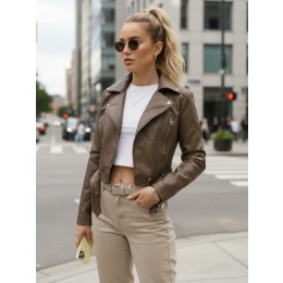Dámská kožená bunda MASSI TY5536 světle hnědá