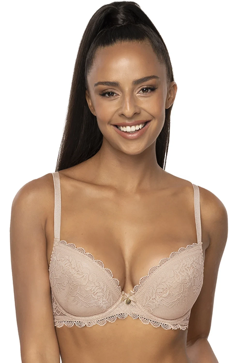 Podprsenka značky Mat, model Estelle 0198/11/2. Má drátky, které podporují prsa a vhodně je tvarují. Výrobek má nastavitelná ramínka bez možnosti jejich odepnutí. Zapínání na háčky a očka. Místo zapínání: na zádech. 2 řady svislých výšivek. 3 úrovně vodorovných výšivek. Výrobek je vyroben z 29 % polyamidu, 26 % bavlny, 22 % polyuretanu, 20 % polyesteru, 5 % elastanu. Dámský výrobek. Výrobek má kapsy na vložky.