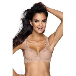 Podprsenka značky Mat, model 053/22 Carmela. Má drátky, které podpírají prsa a správně je tvarují. Svislé velrybí kostice na bocích. Výrobek má nastavitelná ramínka bez možnosti jejich odepnutí. Zapínání na háčky. Místo zapínání: na zádech. 2 řady svislých háčků. 3 stupně vodorovných háčků. Výrobek je vyroben z 66 % polyamidu, 18 % bavlny, 10 % polyuretanu, 6 % elastanu. Dámský výrobek. Vlastnosti výrobku: bílá barva, krajka.