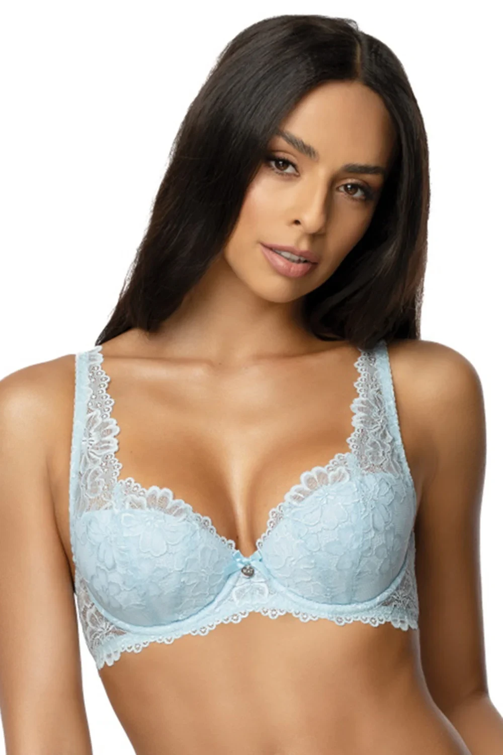 Podprsenka značky Mat, model 053/22 Carmela. Má drátky, které podpírají prsa a vhodně je tvarují. Výrobek má nastavitelná ramínka bez možnosti jejich odepnutí. Podprsenka se zapíná na háčky. Místo zapínání: na zádech. 2 řady svislých výšivek. 3 stupně vodorovných výšivek. Výrobek je vyroben ze 44 % polyamidu, 17 % bavlny, 17 % polyesteru, 17 % polyuretanu, 5 % elastanu. Vlastnosti výrobku: krajkový ženský krásný elegantní.