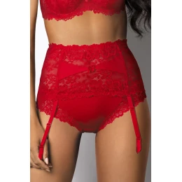 Podvazkový pás značky Mat, model 053/3 Carmela. Výrobek je vyroben z 88 % polyamidu, 12 % elastanu. Vlastnosti výrobku: sexy krajka. místo zapínání: na zádech. zapínání na háčky. čtyři řady svislých háčků. má drátky, které podpírají prsa a vhodně je tvarují. tři stupně vodorovných háčků. svislé velrybí kostice na bocích. pás s ramínky. dámský výrobek. ramínka jsou nastavitelná.