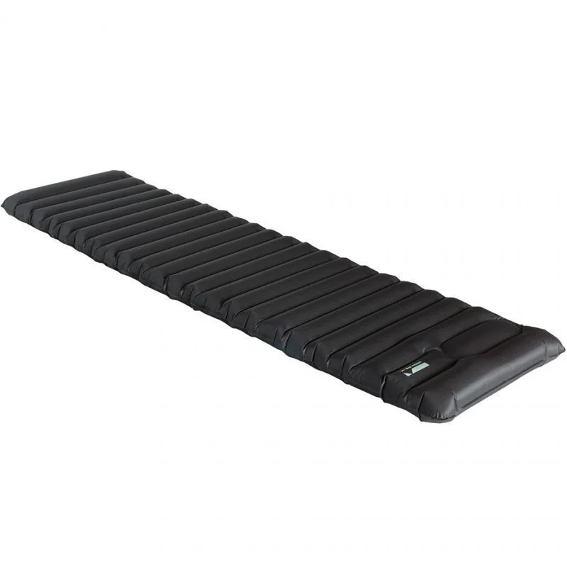 Středně velká polyesterová turistická matrace pro jednu osobu s integrovanou pumpou.
