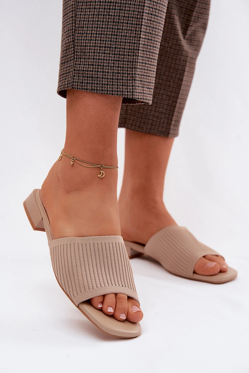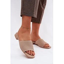Materiálové dámské pantofle na plochém podpatku tmavě béžové Belissea