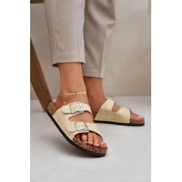 Dámské pantofle vyrobené z textilního materiálu jsou skvělou volbou na teplé dny. Dvě pásky s přezkami zajišťují snadné přizpůsobení k noze, zatímco korková podrážka dodává lehkost a módní charakter. Profilovaná vložka zaručuje pohodlí po celý den, což tyto pantofle činí ideální volbou na procházky nebo letní výlety. Pohodlí a styl v jednom! Při výběru velikosti se řiďte tabulkou velikostí.