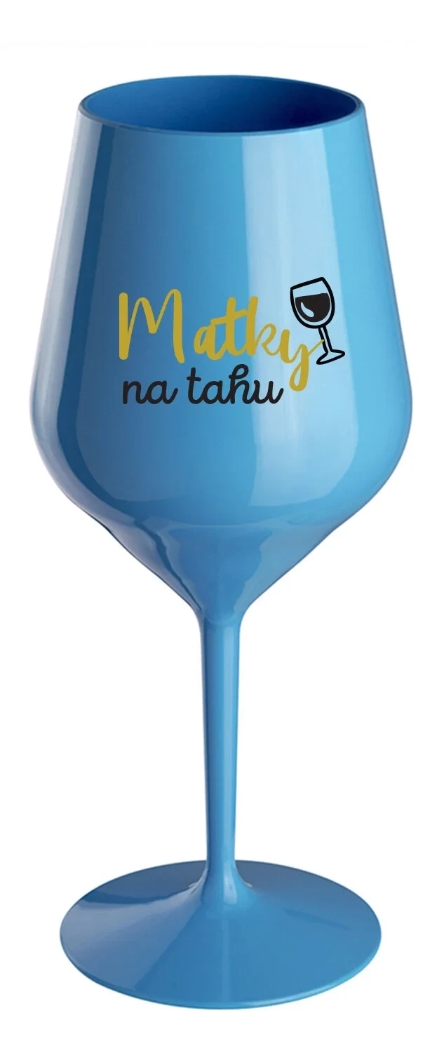 MATKY NA TAHU - modrá nerozbitná sklenice na víno 470 ml