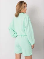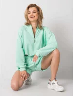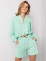 Dámská velurová souprava v mátové barvě s kapucí (8C1175-139)