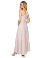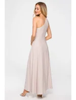 Maxi šaty na jedno rameno M718 šampaňské - MOE