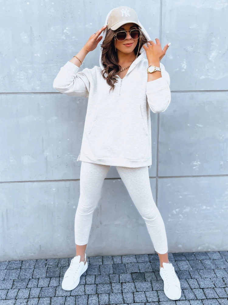- Všestrannost - Souprava, která se skládá z mikiny nadměrné velikosti a odpovídajících žebrovaných legín, nabízí širokou škálu možností stylizace. Nosí se buď jako souprava, nebo samostatně a vždy vypadá stylově.