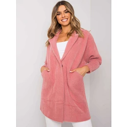 Růžový huňatý kabát z alpaky.