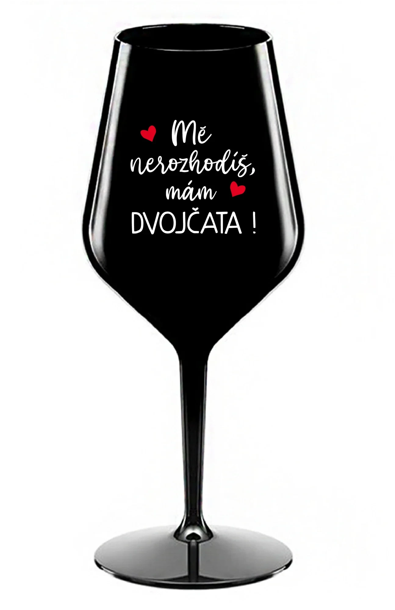 MĚ NEROZHODÍŠ, MÁM DVOJČATA! - černá nerozbitná sklenice na víno 470 ml