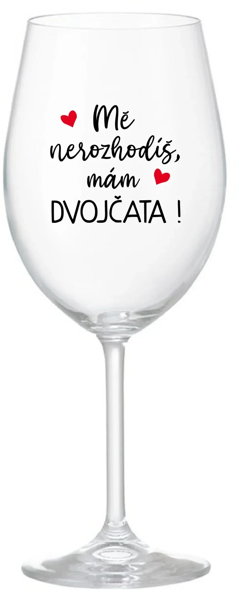 Vinná čirá sklenice s originálním motivem MĚ NEROZHODÍŠ, MÁM DVOJČATA! je krásným a osobitým dárkem, které ale využijete i Vy sami třeba ve chvílích, kdy si budete chtít zpříjemnit náročný den. Tyto originální vinné sklenice jsou totiž nejen pro výjimečné události, ale i pro běžné večery, které si chcete zpříjemnit sklenkou dobrého vína. Jistě proto potěší každého milovníka vína, i toho, kdo si umí svůj život vychutnat plnými doušky.