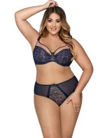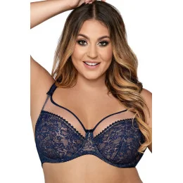 Transparentny tiul ozdobiony delikatną, koronkową aplikacją w odcieniach głębokiego granatu i fuksji subtelnie eksponuje dekolt, dodając całości wyrafinowanej zmysłowości. Seksownie zaakcentowany mostek i brak fiszbin bocznych zapewniają pełną swobodę ruchów i komfort noszenia przez cały dzień.
